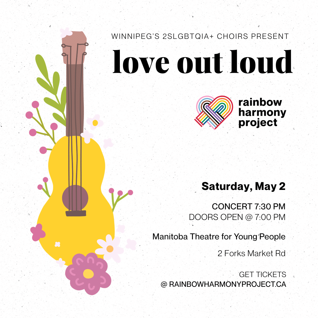 Join RHP for Love Out Loud: Queer as Folk, a concert that celebrates love, community, and the joy of being together. Winnipeg’s premiere 2SLGBTQIA+ choirs, including both our adult and youth ensembles, team up with a full band to bring folk traditions to life through a beautifully queer lens. From sea shanties to bluegrass, from singer‑songwriter storytelling to […]